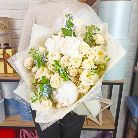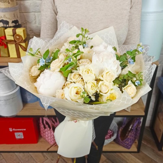 Решила сделать себе подарок и заказала этот букет. Доставка была сделана во время. Надежный магазин