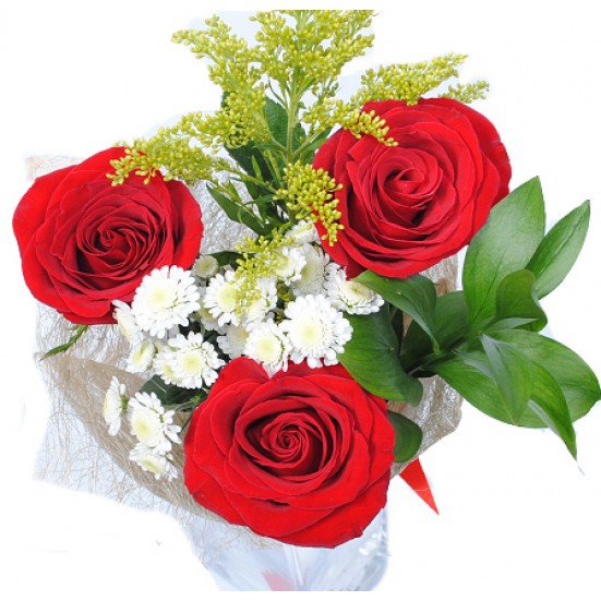 Букет «3 красных роз и 2 белых хризантем» в Алчевске